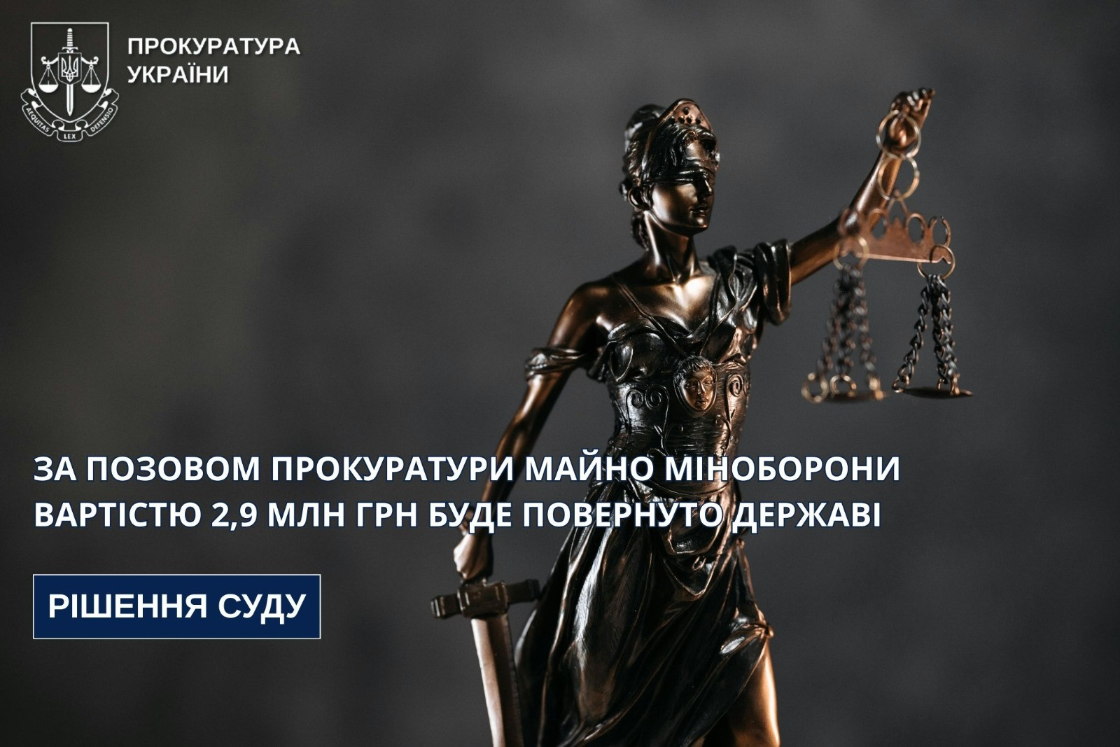 According to the prosecution's lawsuit, the property of the Ministry of Defense worth UAH 2.9 million will be returned to the state