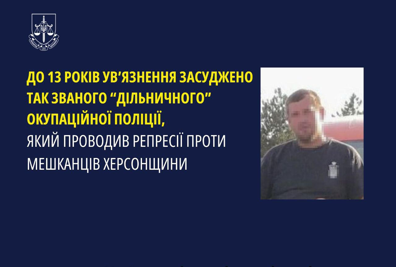 До 13 років ув’язнення засуджено так званого "дільничного" окупаційної поліції, який проводив репресії проти мешканців Херсонщини