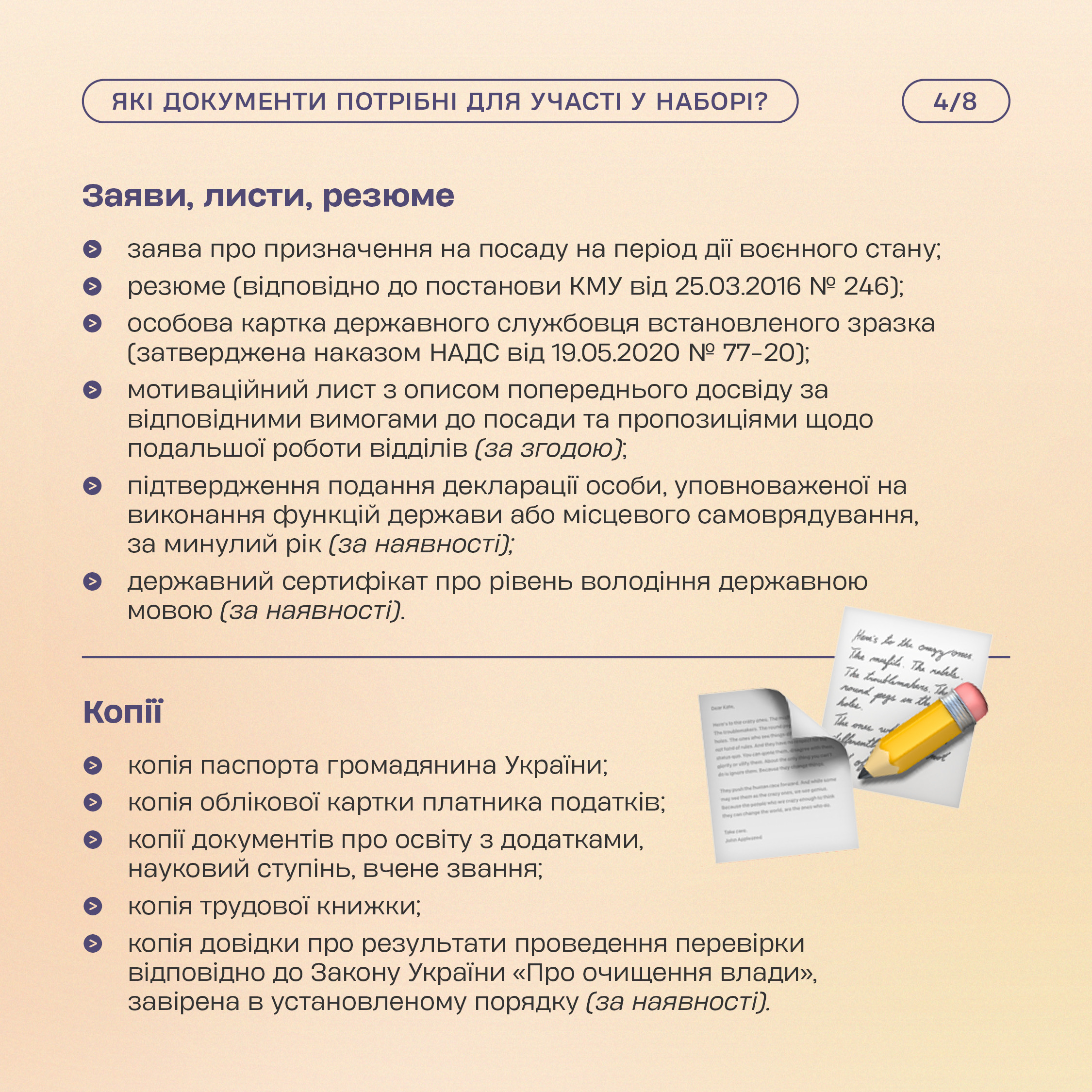Про те, який порядок проведення добору, які документи необхідні, та які вимоги до кандидатів — детальніше розповідаємо в цьому матеріалі.