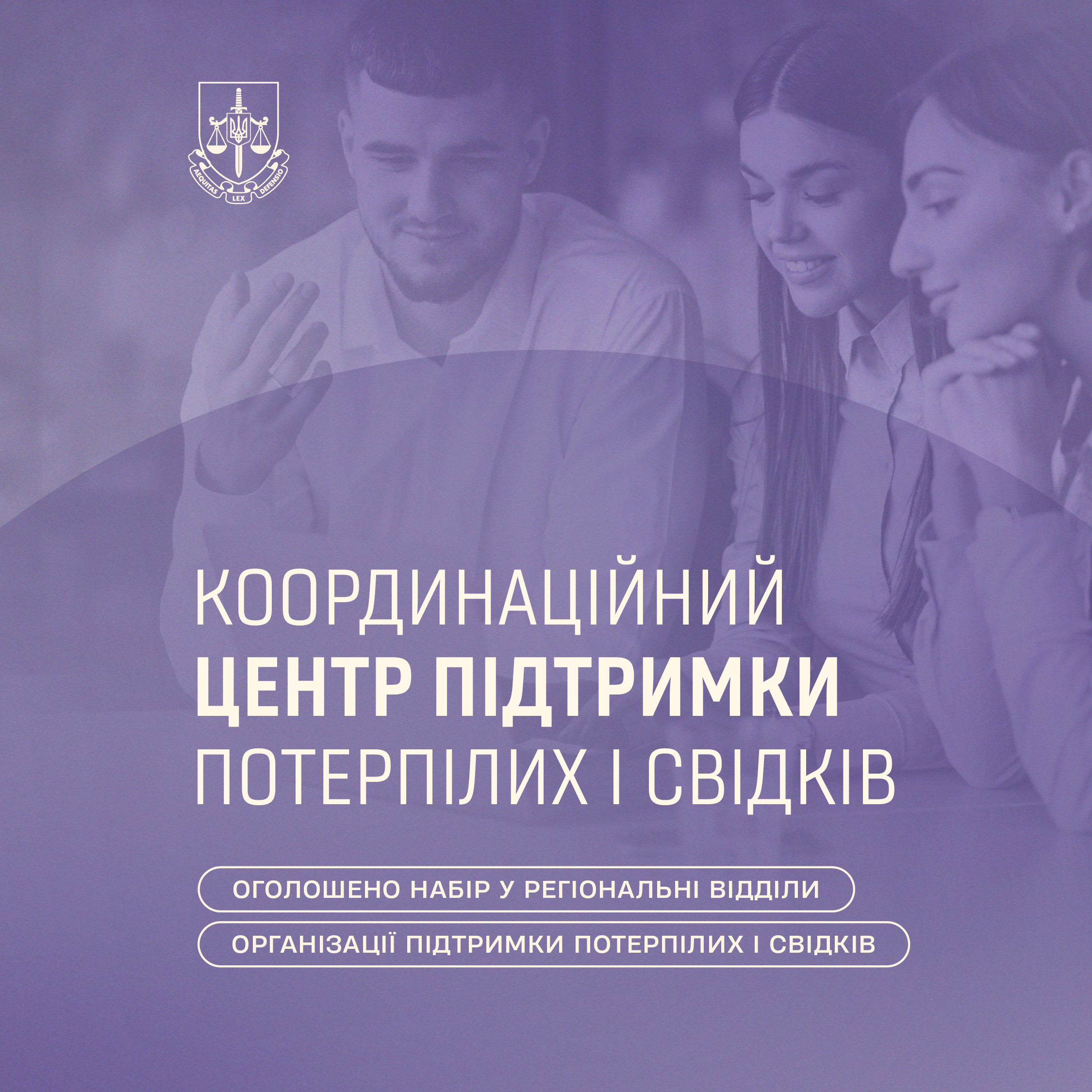 Офіс Генерального прокурора оголошує набір на вакантні посади у новостворених регіональних відділах організації підтримки потерпілих і свідків.