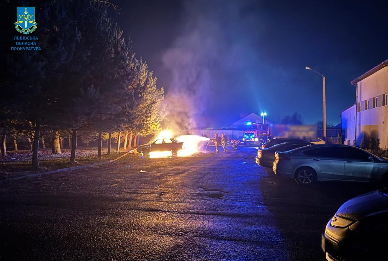 За процесуального керівництва Львівської обласної прокуратури мешканцю Запорізької області повідомлено про підозру в організації замаху на умисне знищення майна шляхом підпалу, вчиненого групою осіб за попередньою змовою (ч. 3 ст. 27, ч. 2 ст. 28, ч. 2 ст. 15, ч. 2 ст. 194 КК України).