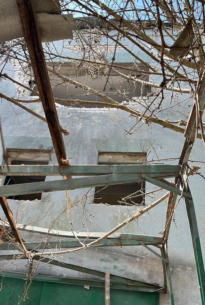 Пошкоджено багатоповерхівку, адмінбудівлю медичного та навчального закладів, автотранспорт, лінії електропередач.