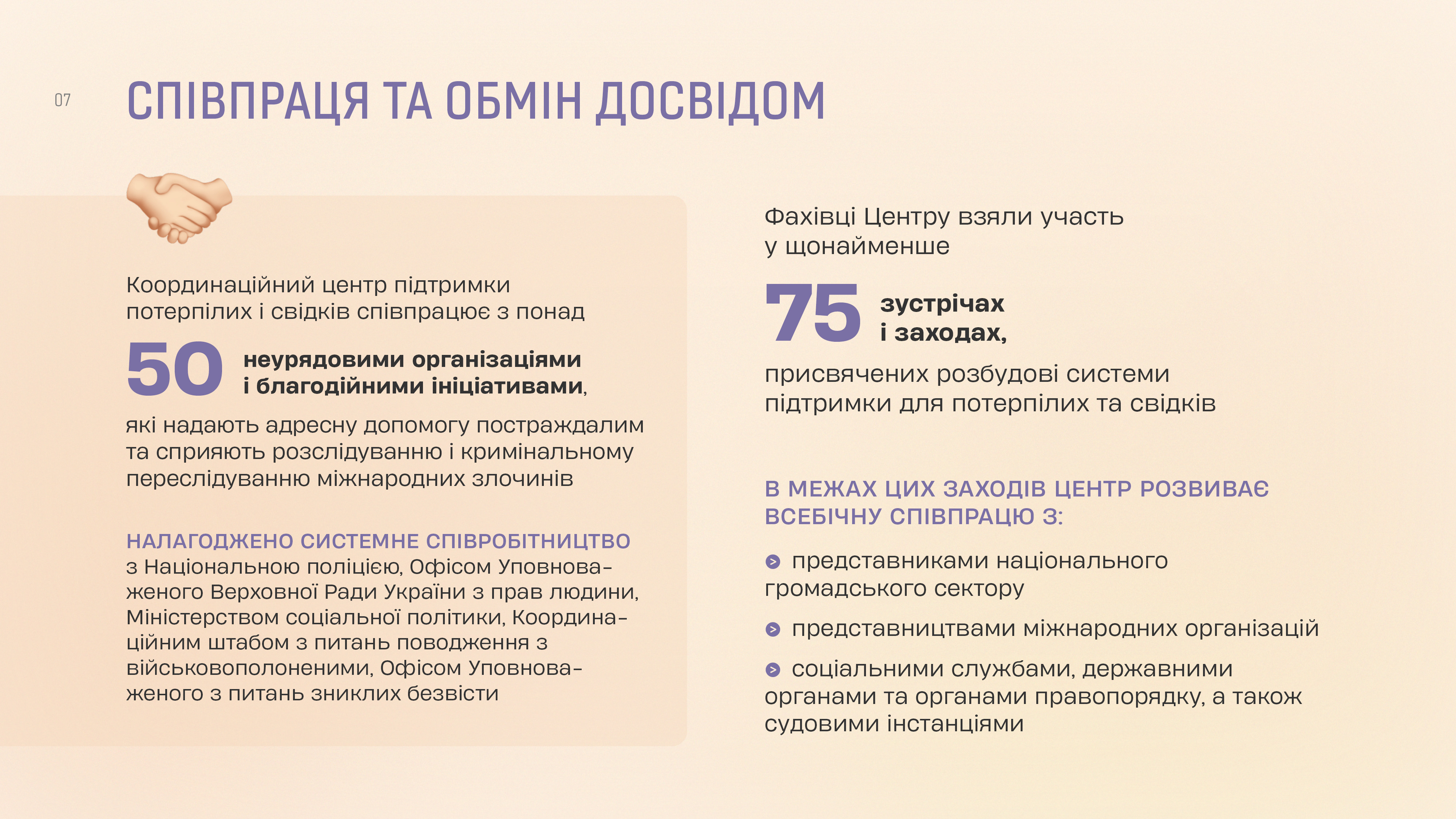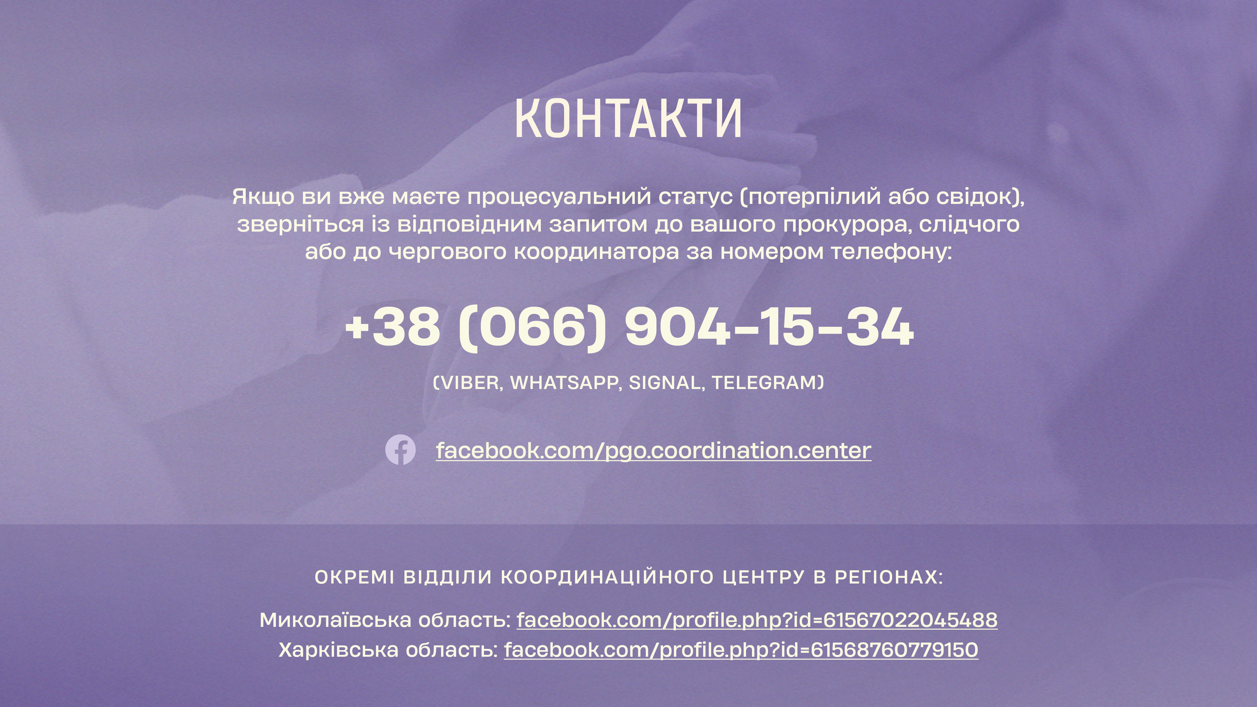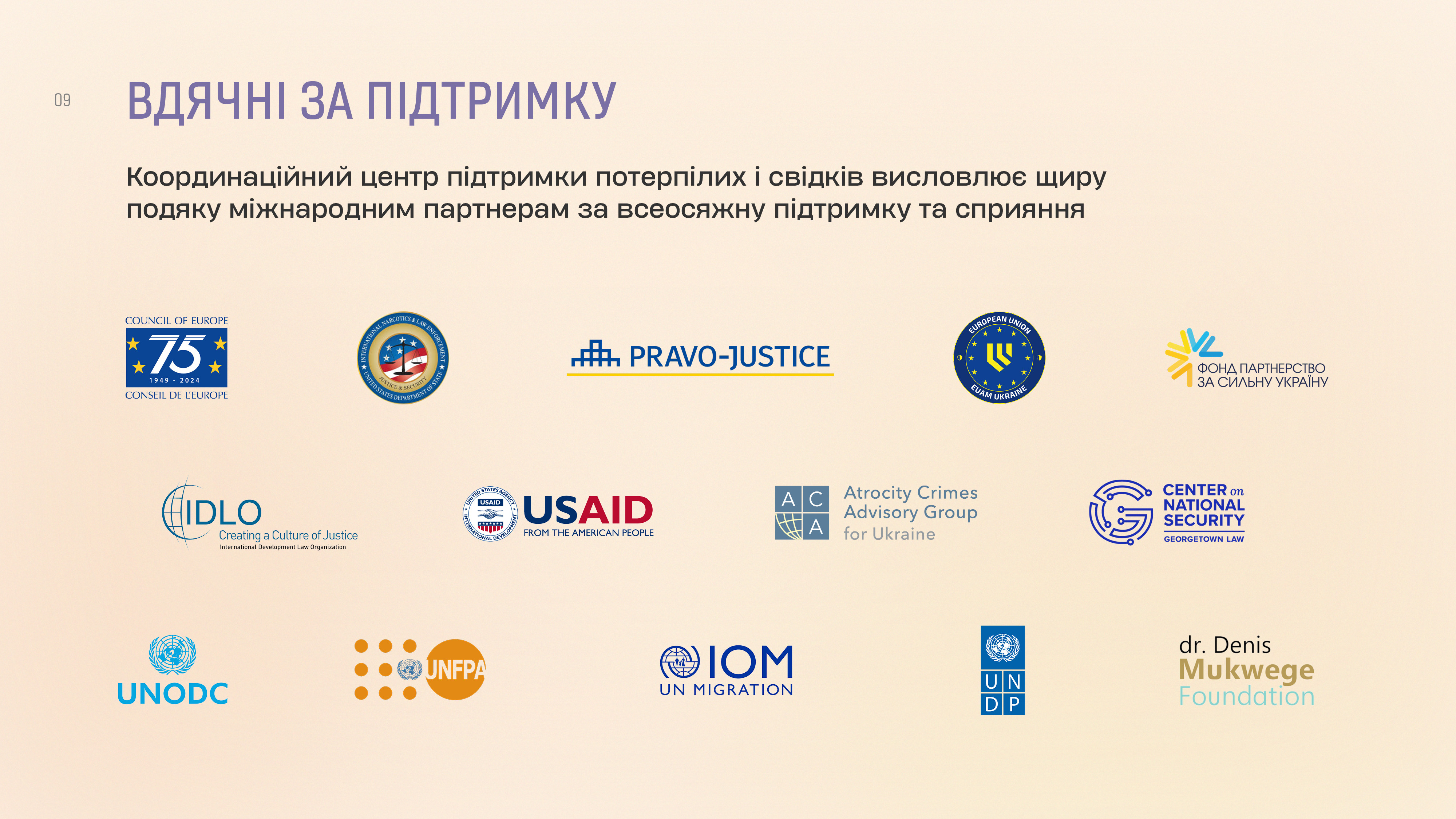 Офіс Генерального прокурора вдячний партнерам, які підтримують роботу Координаційного центру та сприяють забезпеченню належної допомоги потерпілим.