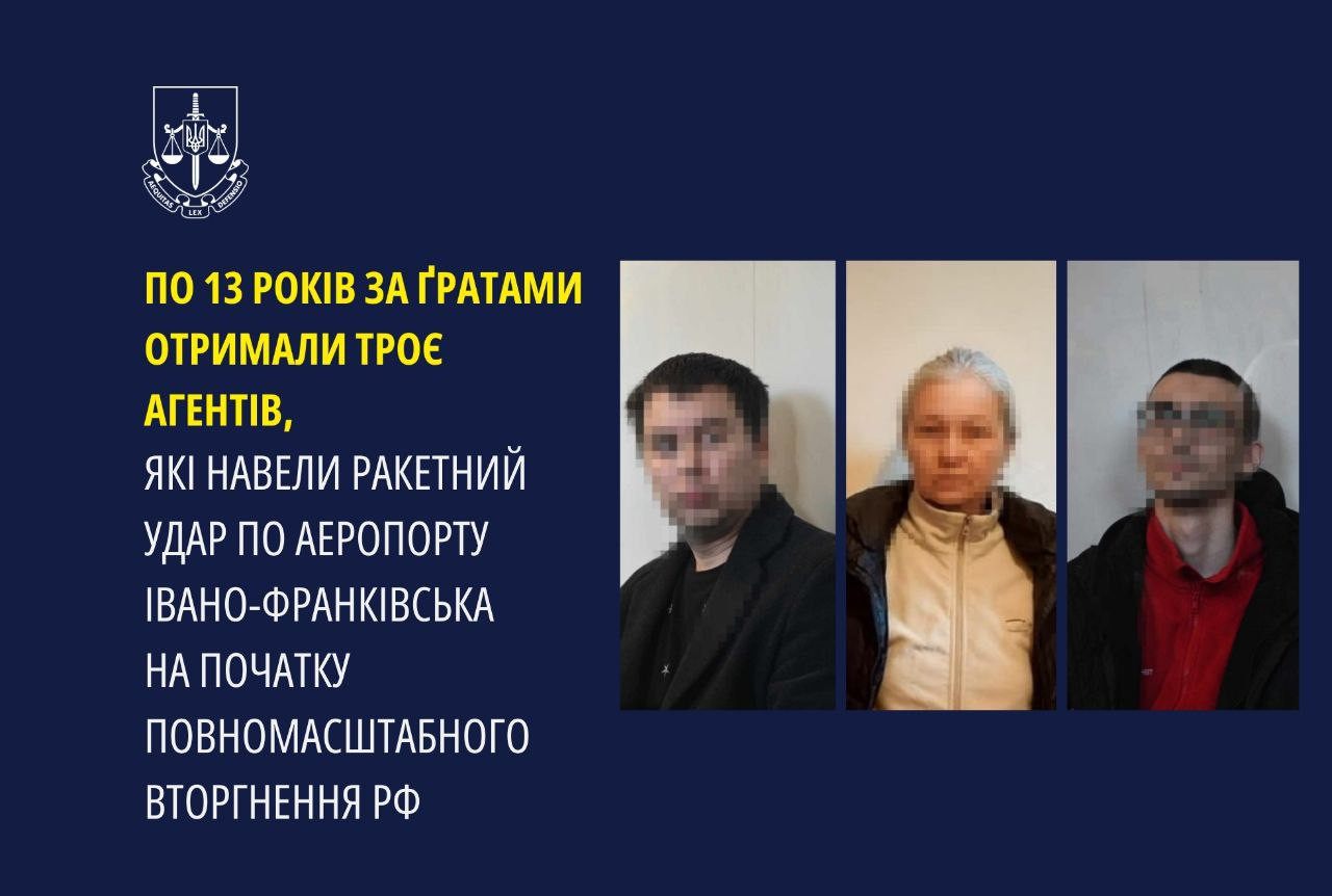 По 13 років за ґратами отримали троє агентів, які навели ракетний удар по аеропорту Івано-Франківська на початку повномасштабного вторгнення рф