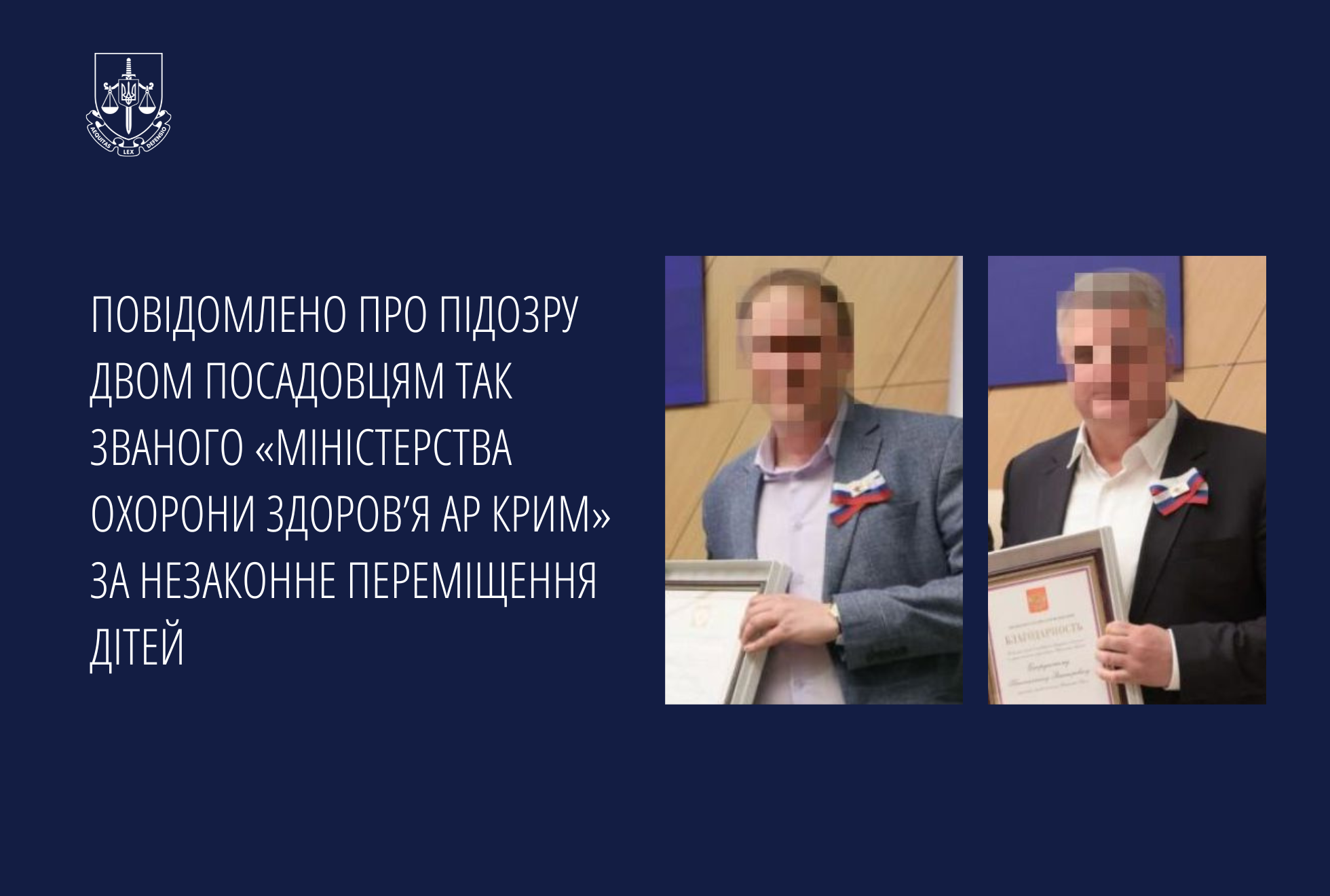 Ювенальні прокурори Офісу Генерального прокурора встановили причетність так званого «міністра охорони здоров’я АР Крим» та його заступника до примусового переміщення 46 малолітніх дітей на тимчасово окуповану територію Кримського півострова.