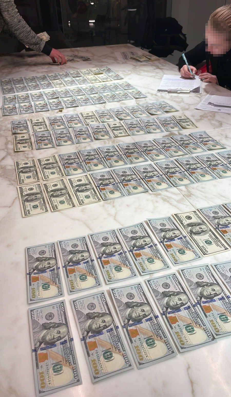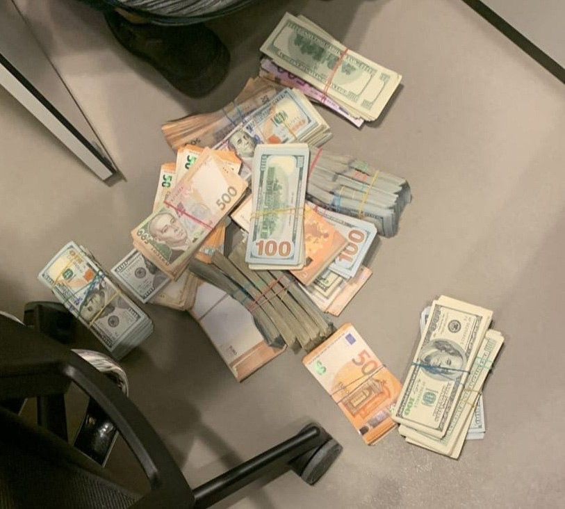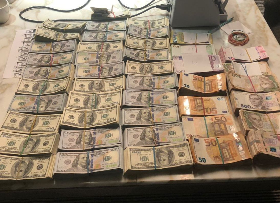 У ході проведених низки обшуків за місцем проживання та в інших приміщеннях правоохоронці вилучили товари військового призначення, мобільні телефони, носії інформації, чорнові записи, печатки, а також грошові кошти у сумі 860 тис грн, 330 тис доларів США та 34 тис євро, походження яких наразі встановлюється.