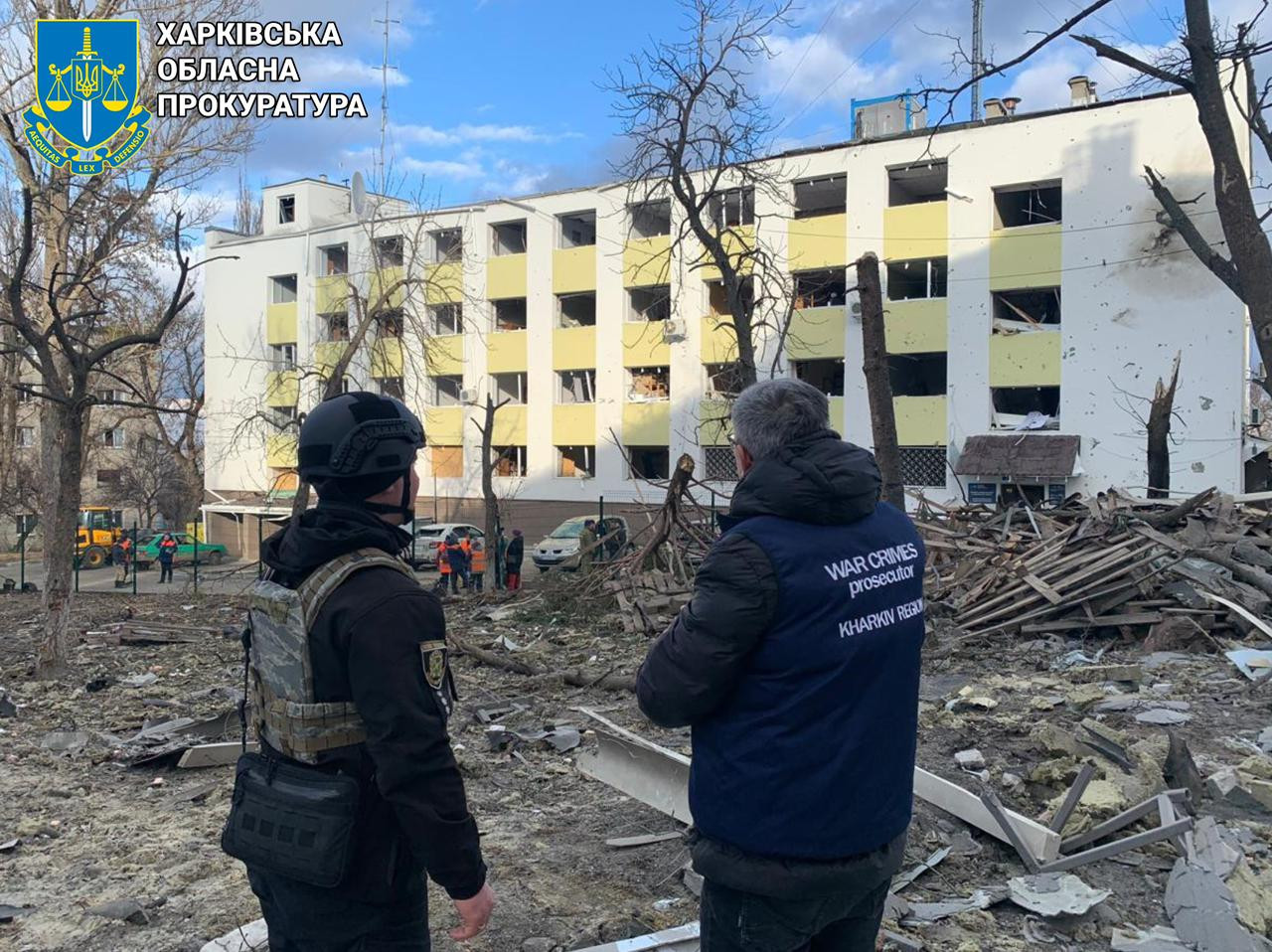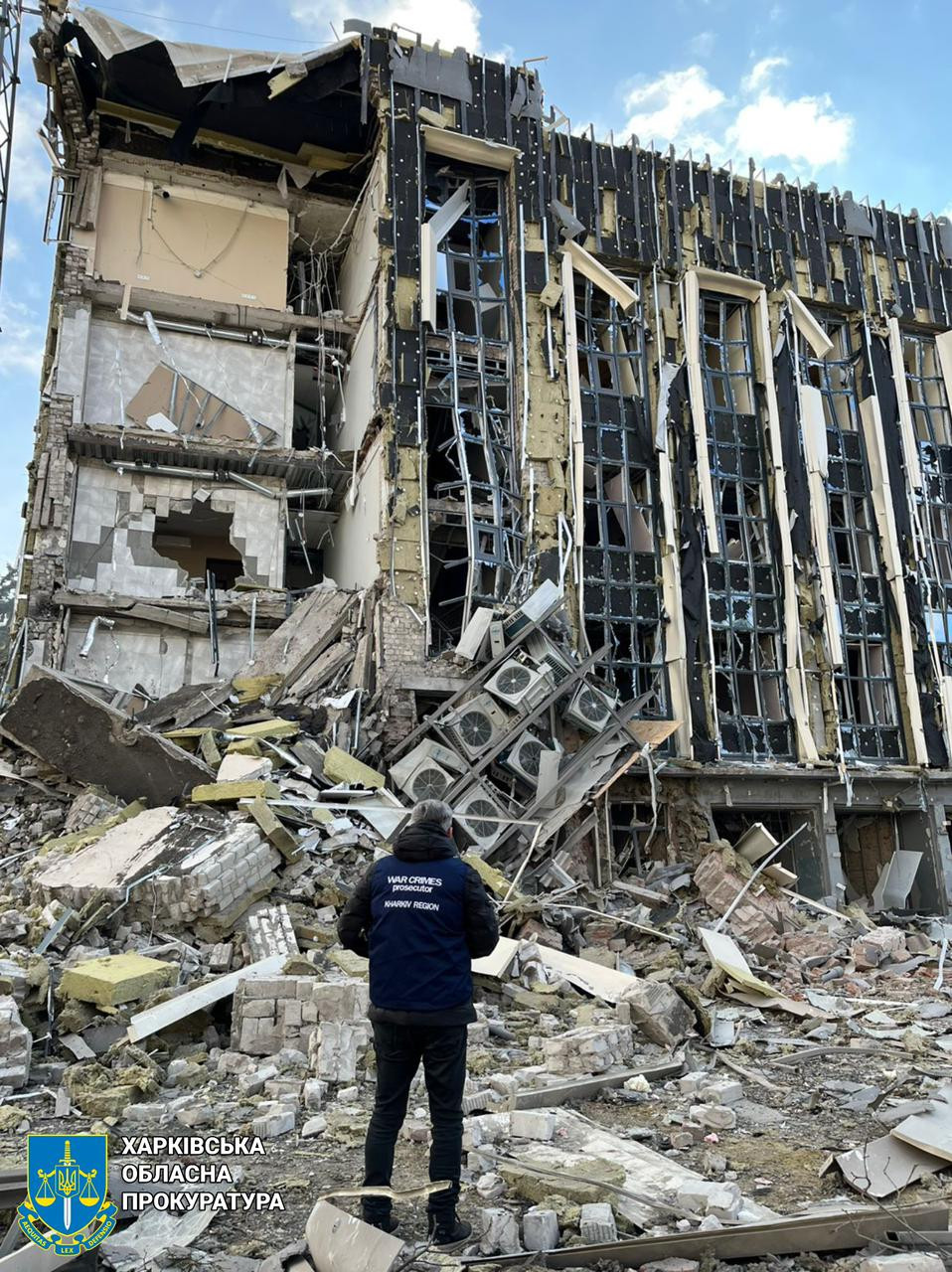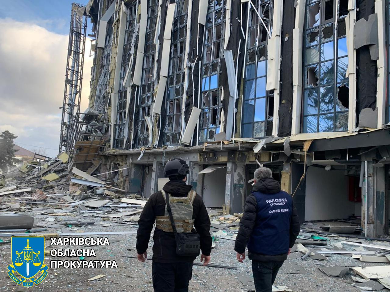 За даними слідства, 4 лютого близько 11:35 збройні сили рф завдали ракетний удар по центру м. Ізюм. Ракета влучила в адміністративну будівлю.