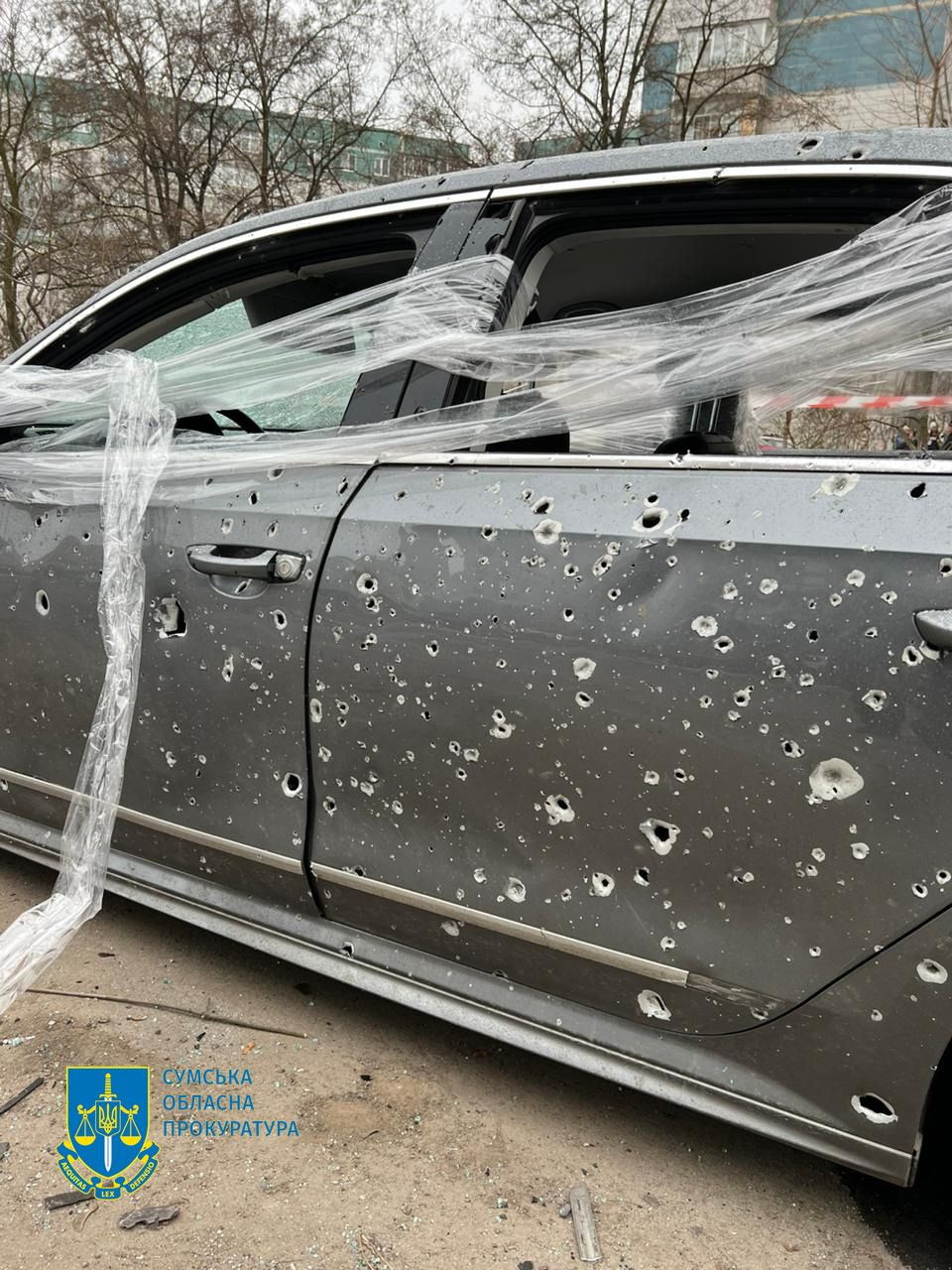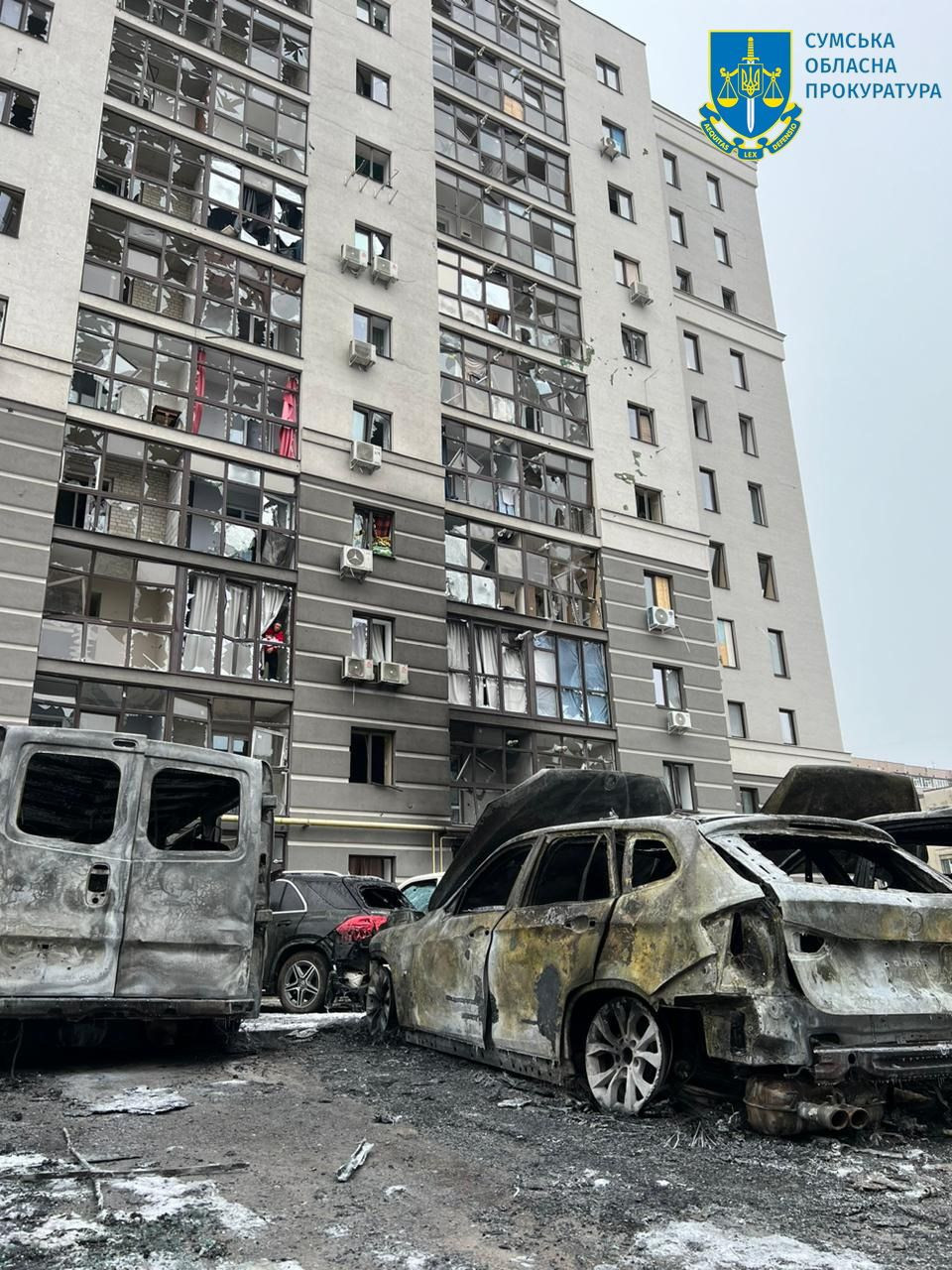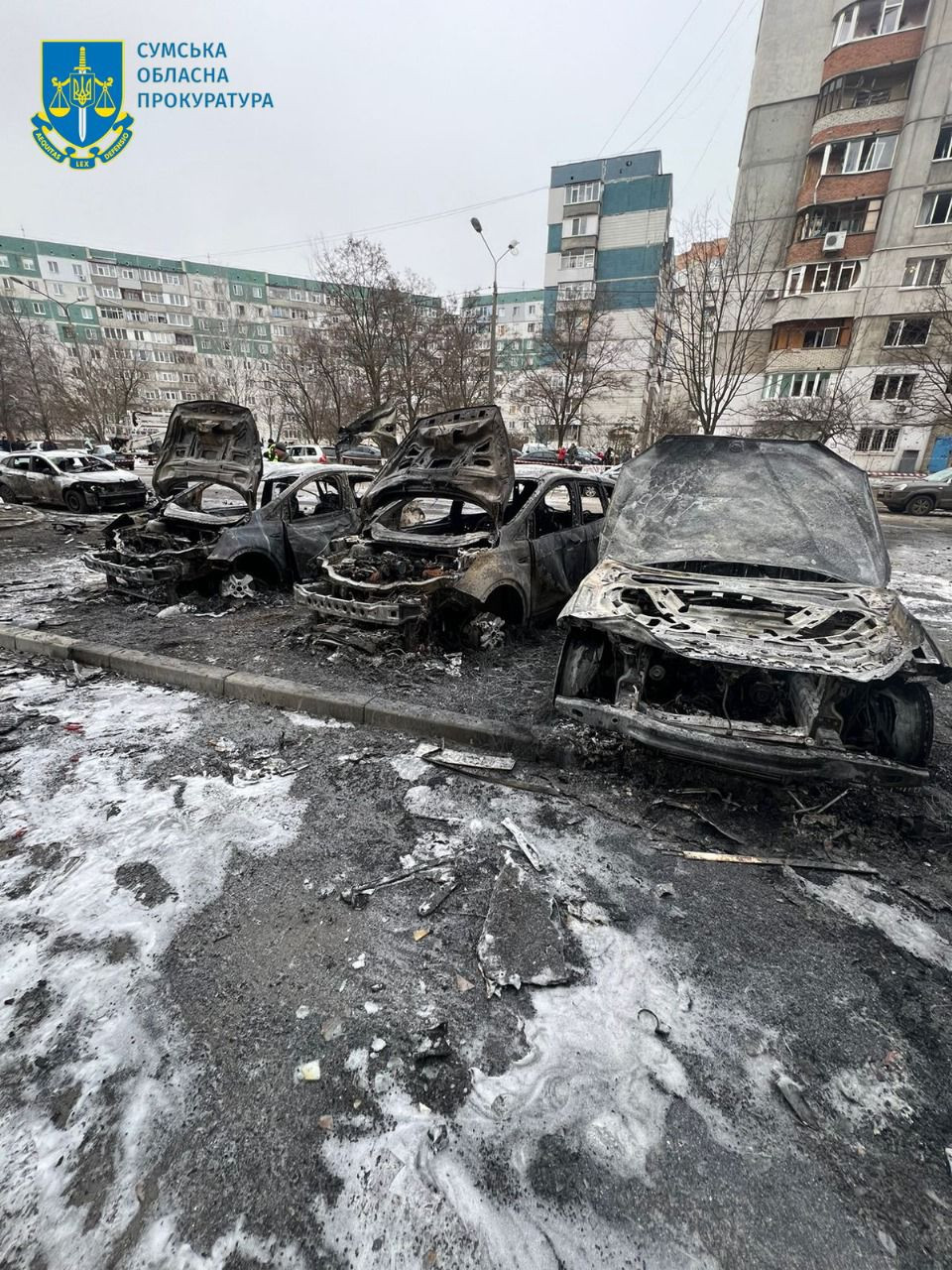 За даними слідства, 9 лютого 2025 року близько 22:50 ворожий безпілотник влучив у автомобільну стоянку у дворі багатоквартирного житлового будинку в м. Суми.