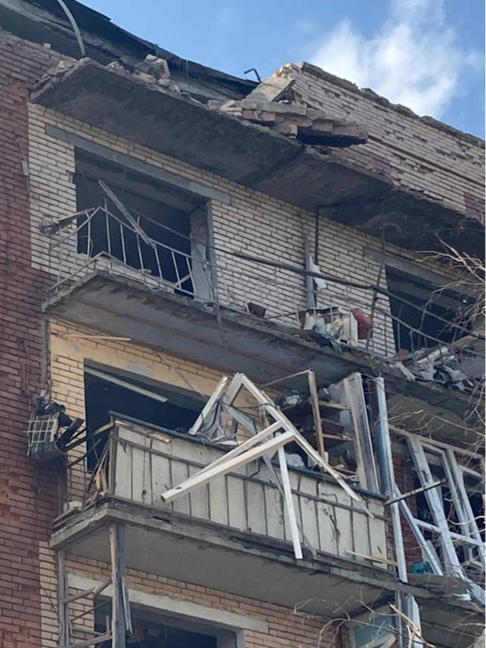 У 7 багатоквартирних будинках вибуховою хвилею вибито вікна, зруйновані дахи та балкони. У кількох квартирах відбулись загоряння. Уламками снарядів пошкоджено будівлі двох підприємств, розподільчий щит електричної підстанції, а також гаражі і 5 легкових автомобілів, одна автівка вигоріла вщент.