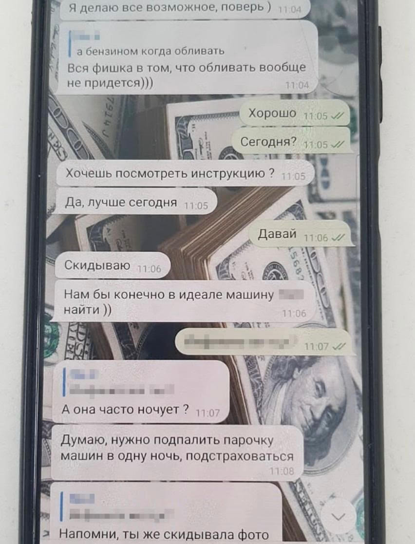 Підозрювана координувала дії підпалювачів, надавала їм інструкції щодо виготовлення саморобних запалювальних пристроїв, якими вони мали знищувати автомобілі військових.