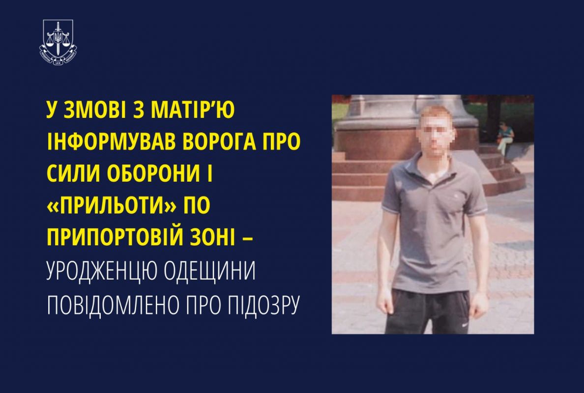 У змові з матір’ю інформував ворога про Сили оборони і «прильоти» по припортовій зоні – уродженцю Одещини повідомлено про підозру