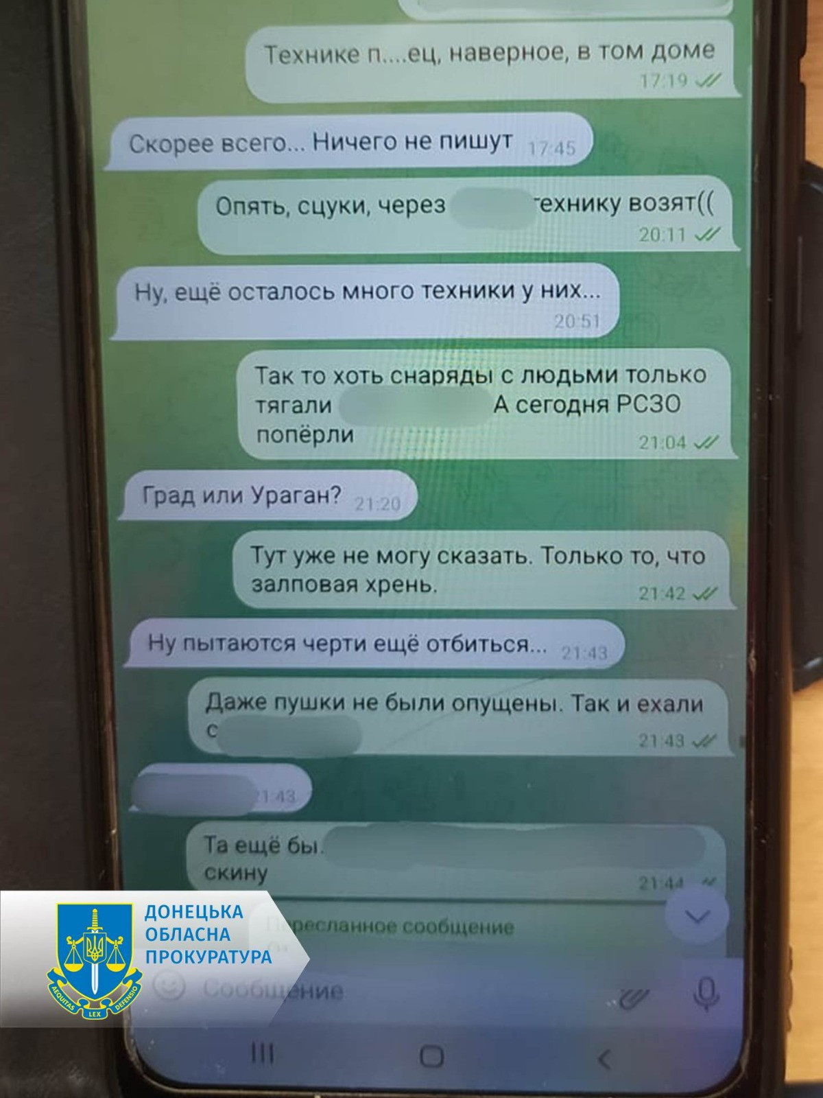 Під час переписки засуджена також надсилала дані про рух населеними пунктами реактивних систем залпового вогню, вантажівок та іншої техніки, яку українські військовослужбовці використовують для оборони нашої держави.