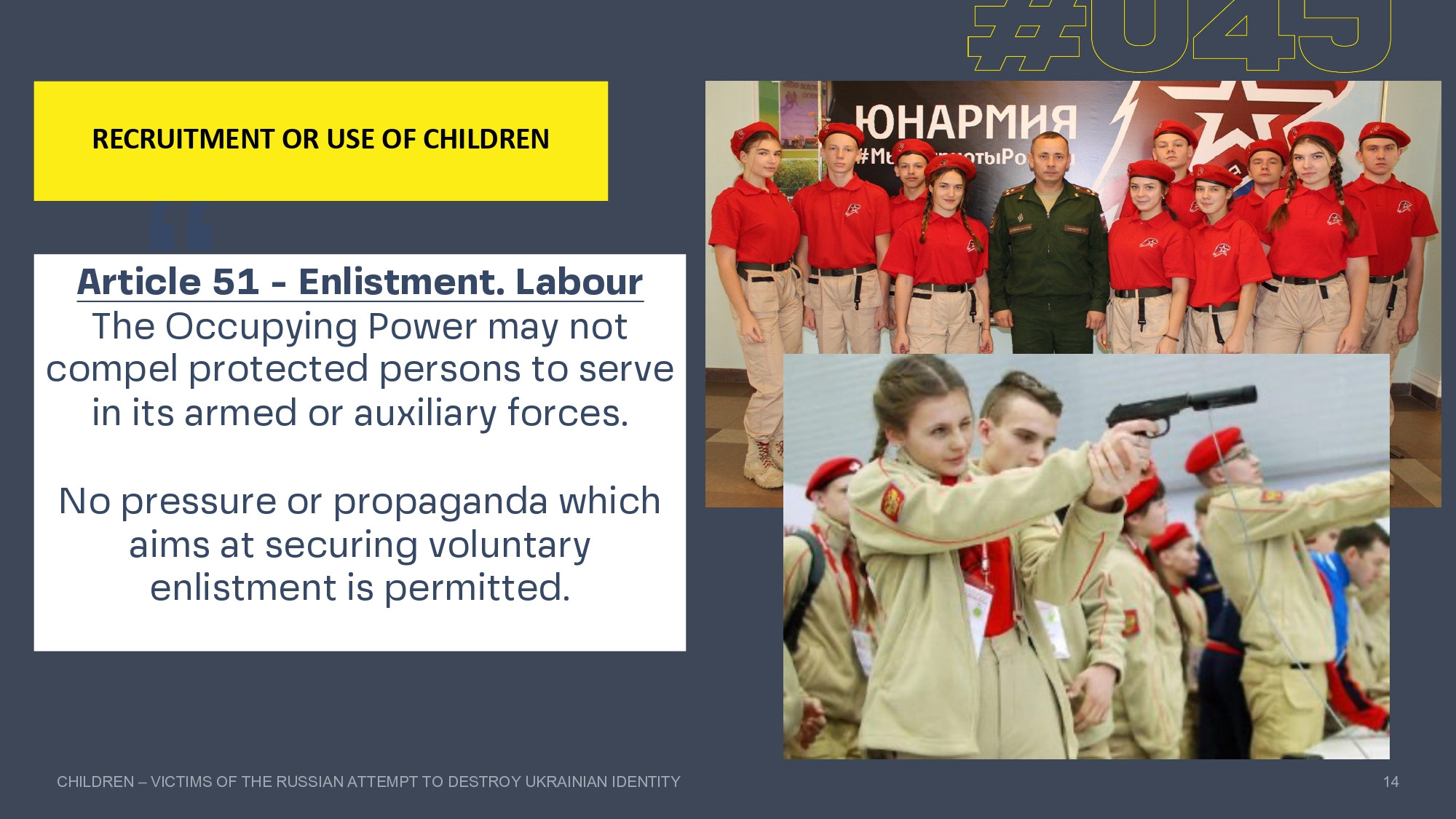 Заступниця Генпрокурора звернула увагу на фіксацію масових фактів втягнення окупантами дітей у збройний конфлікт.