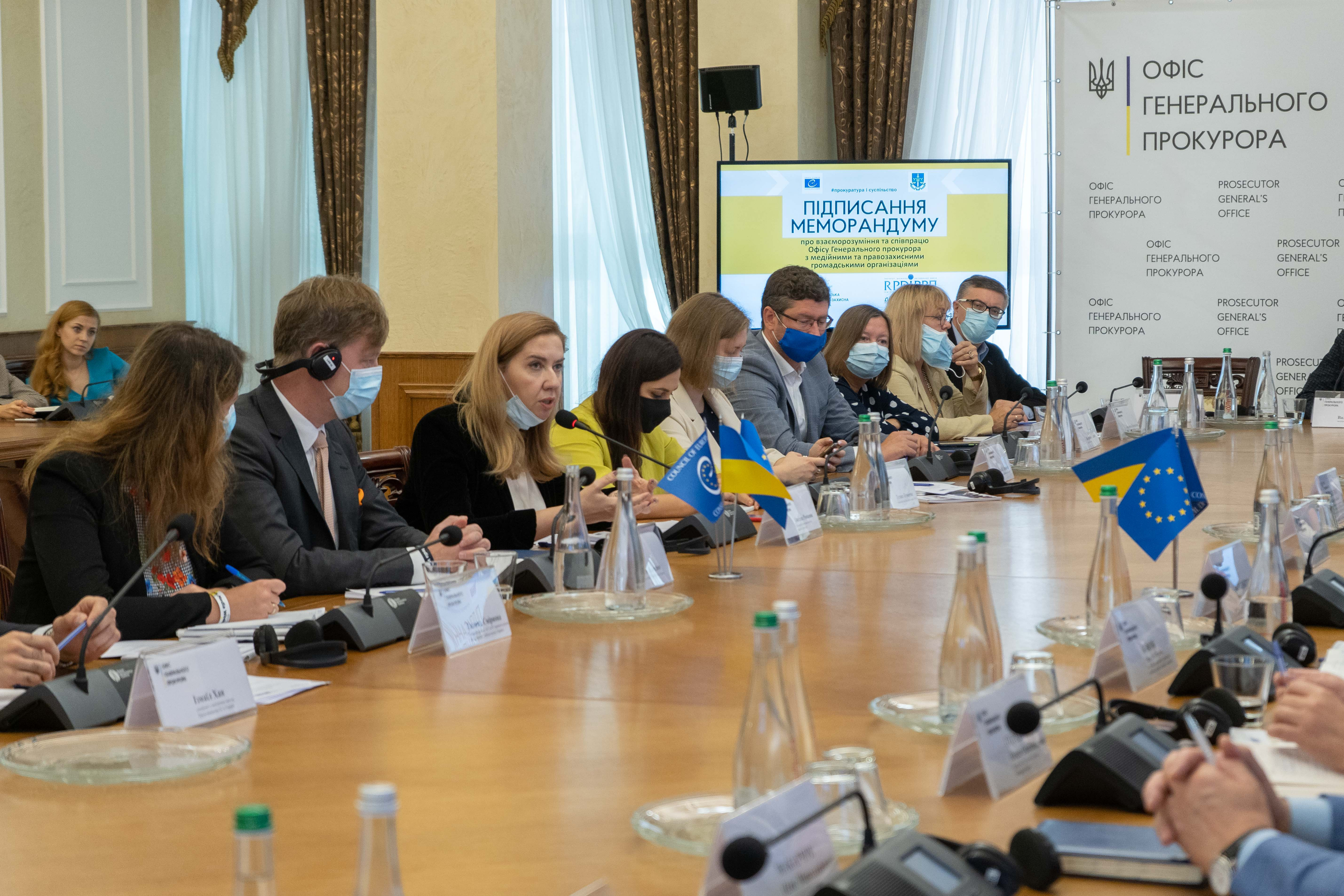 Генеральний прокурор Ірина Венедіктова підписала меморандум про взаєморозуміння та співпрацю між Офісом Генерального прокурора та медійними і правозахисними громадськими організаціями.
